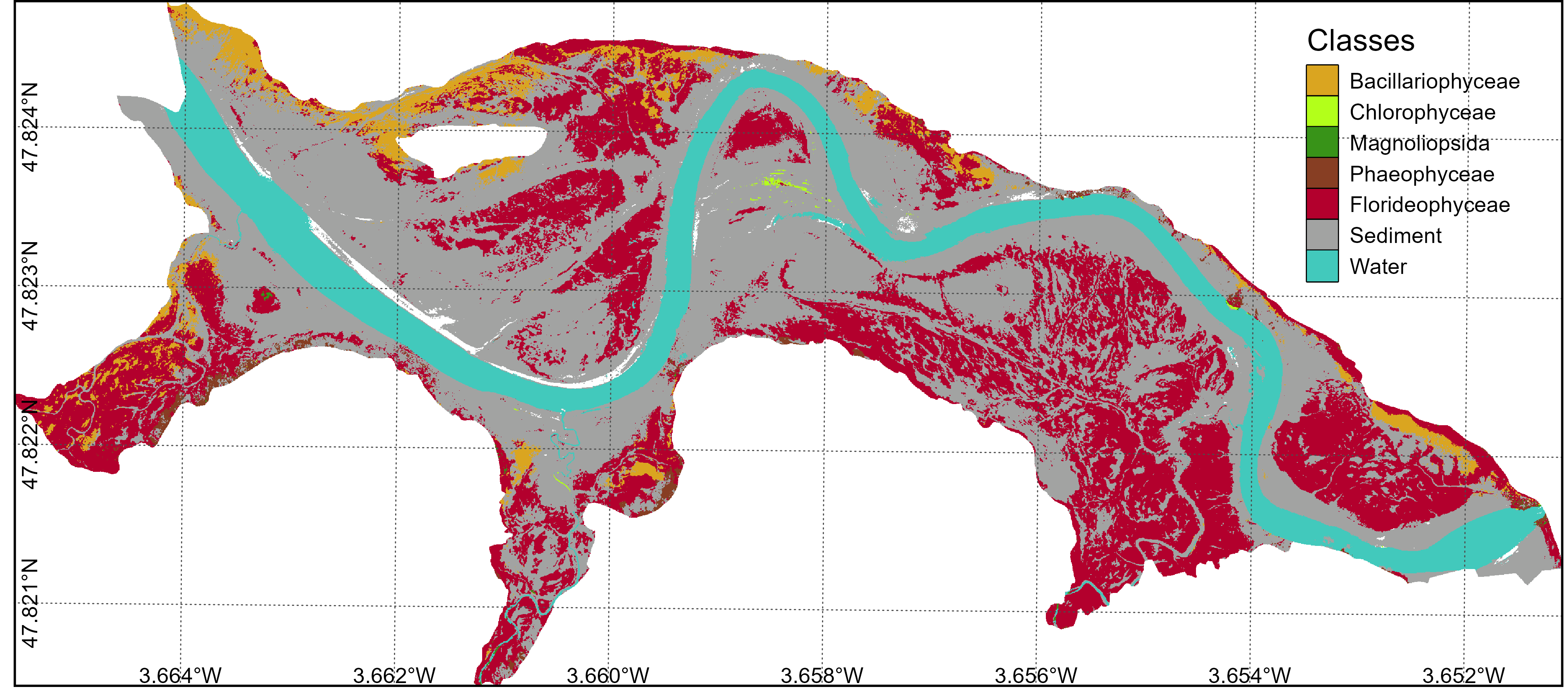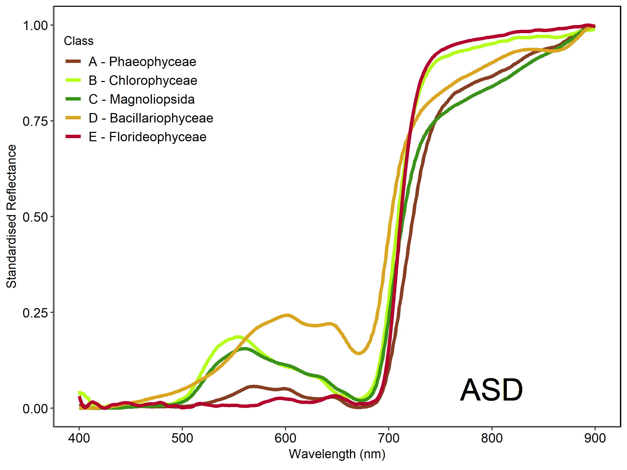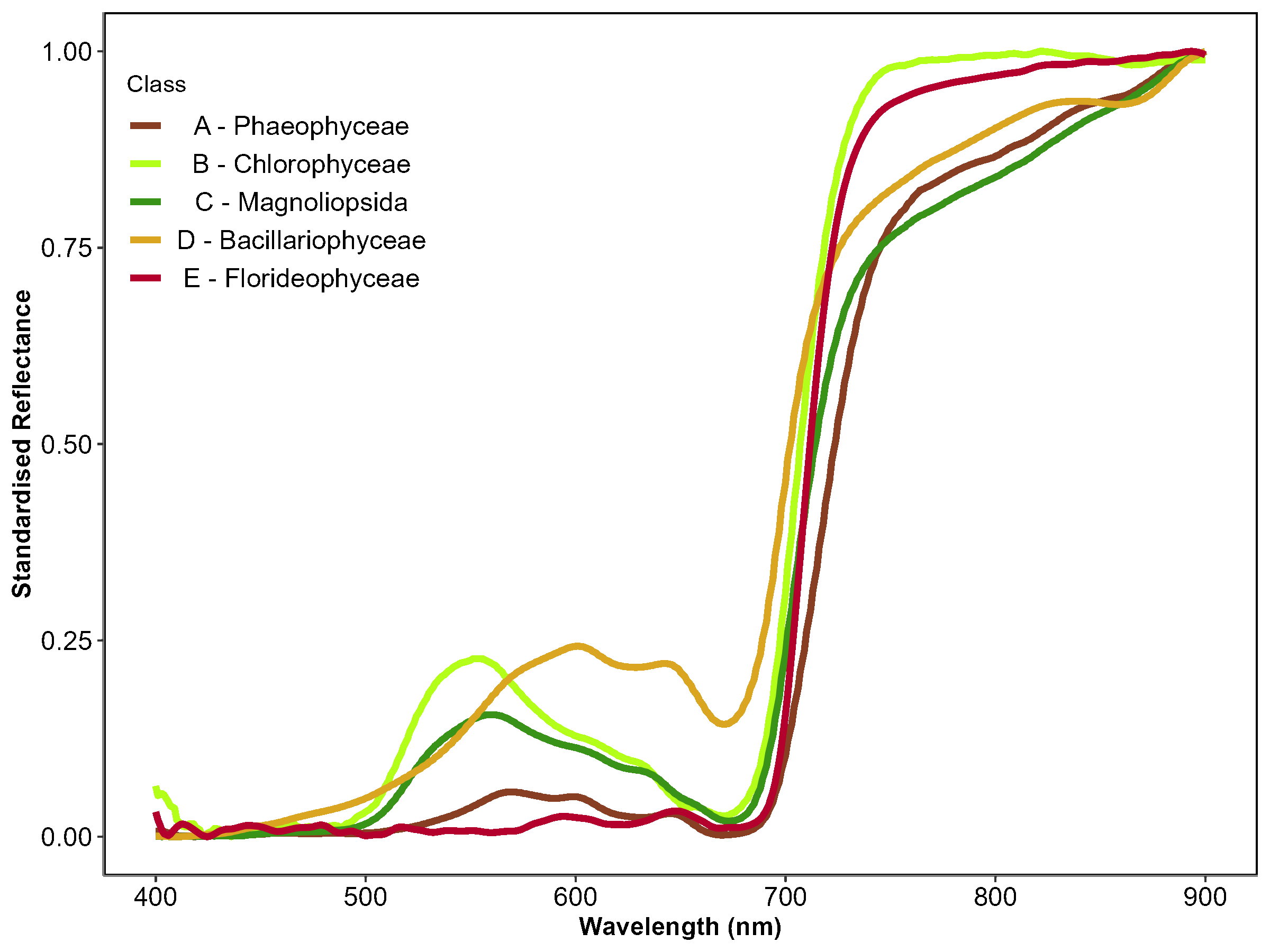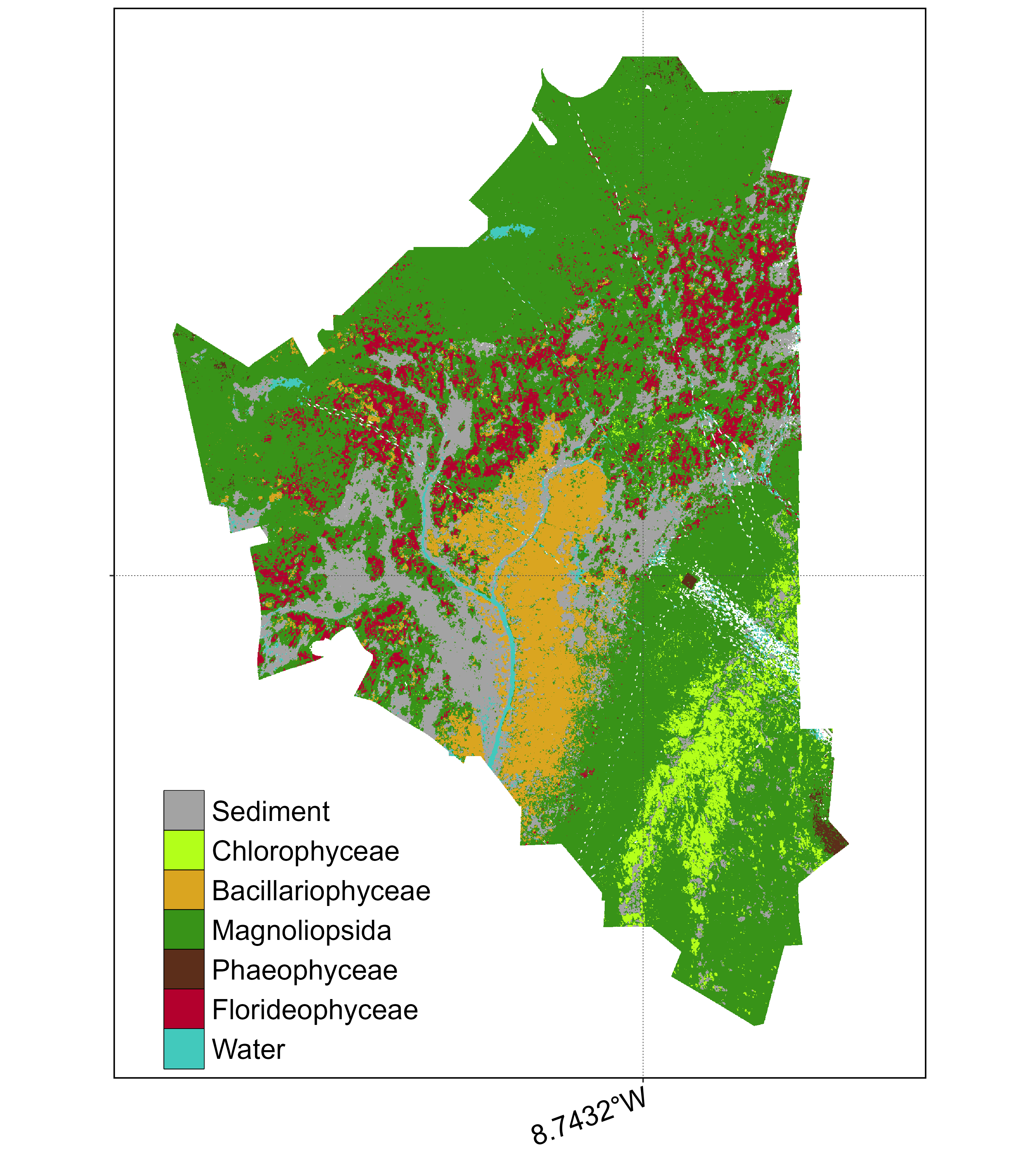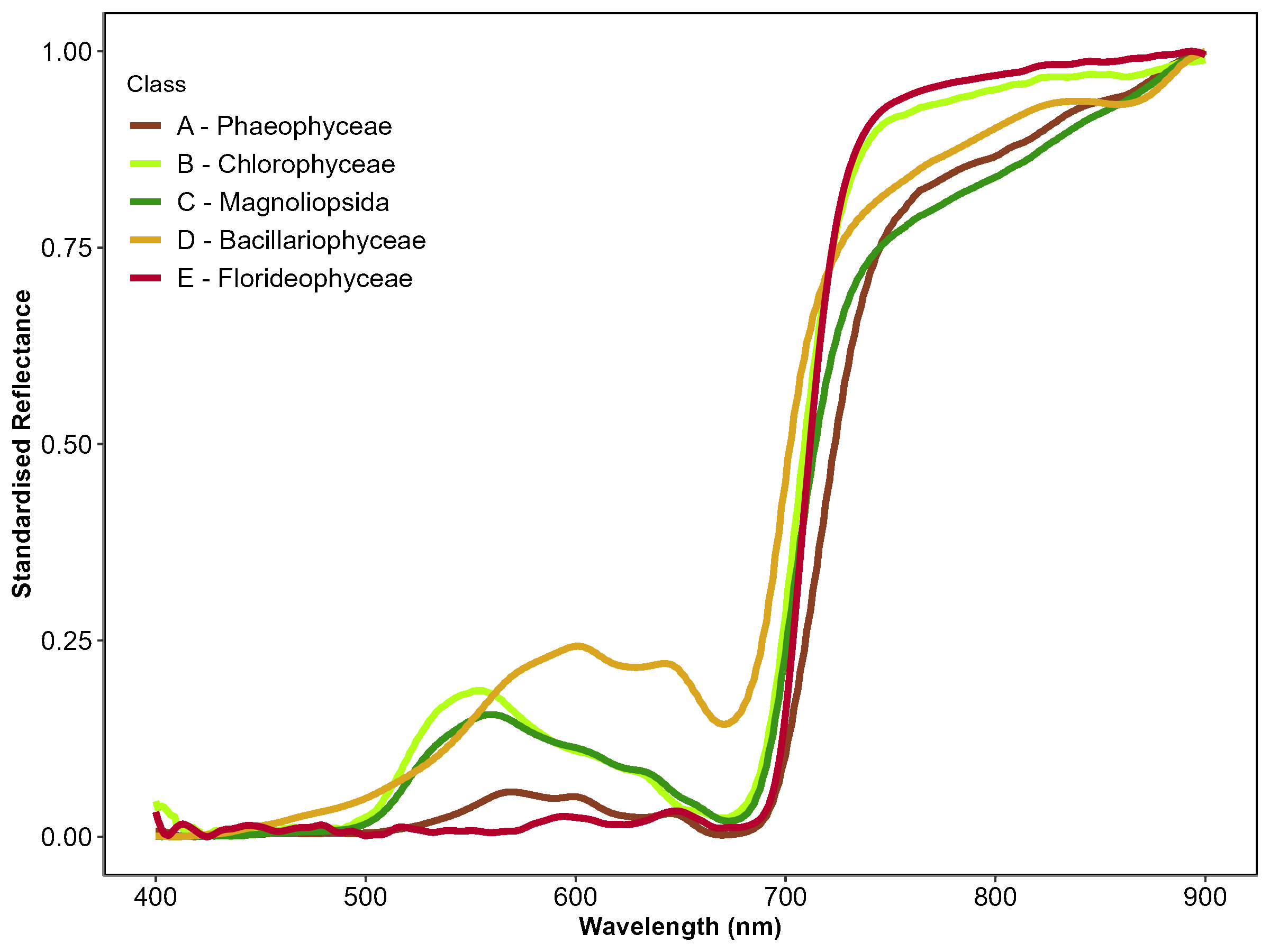 Building an algorithm that discriminates the most common taxonomic classes of vegetation found on soft bottom intertidal sediment