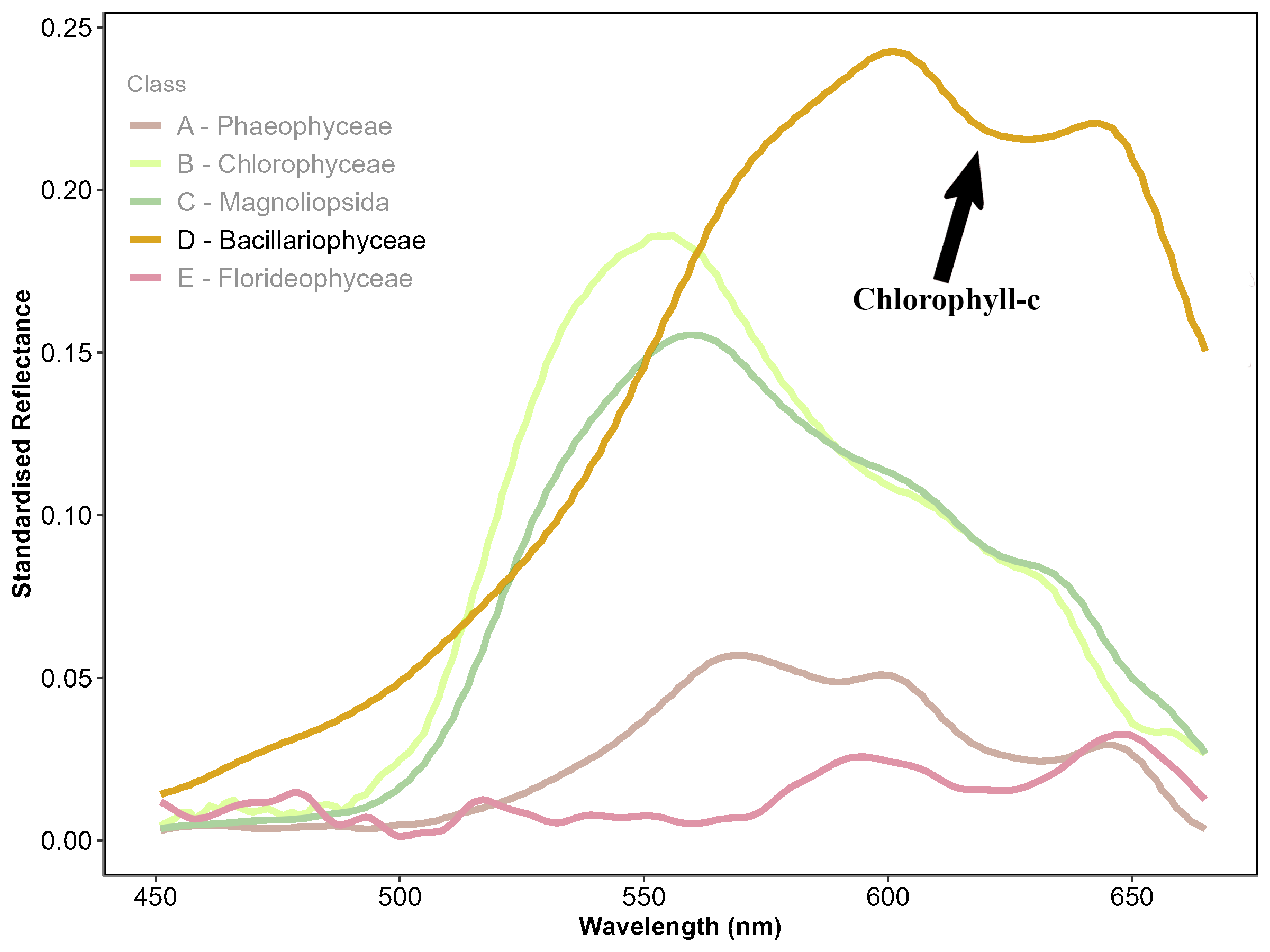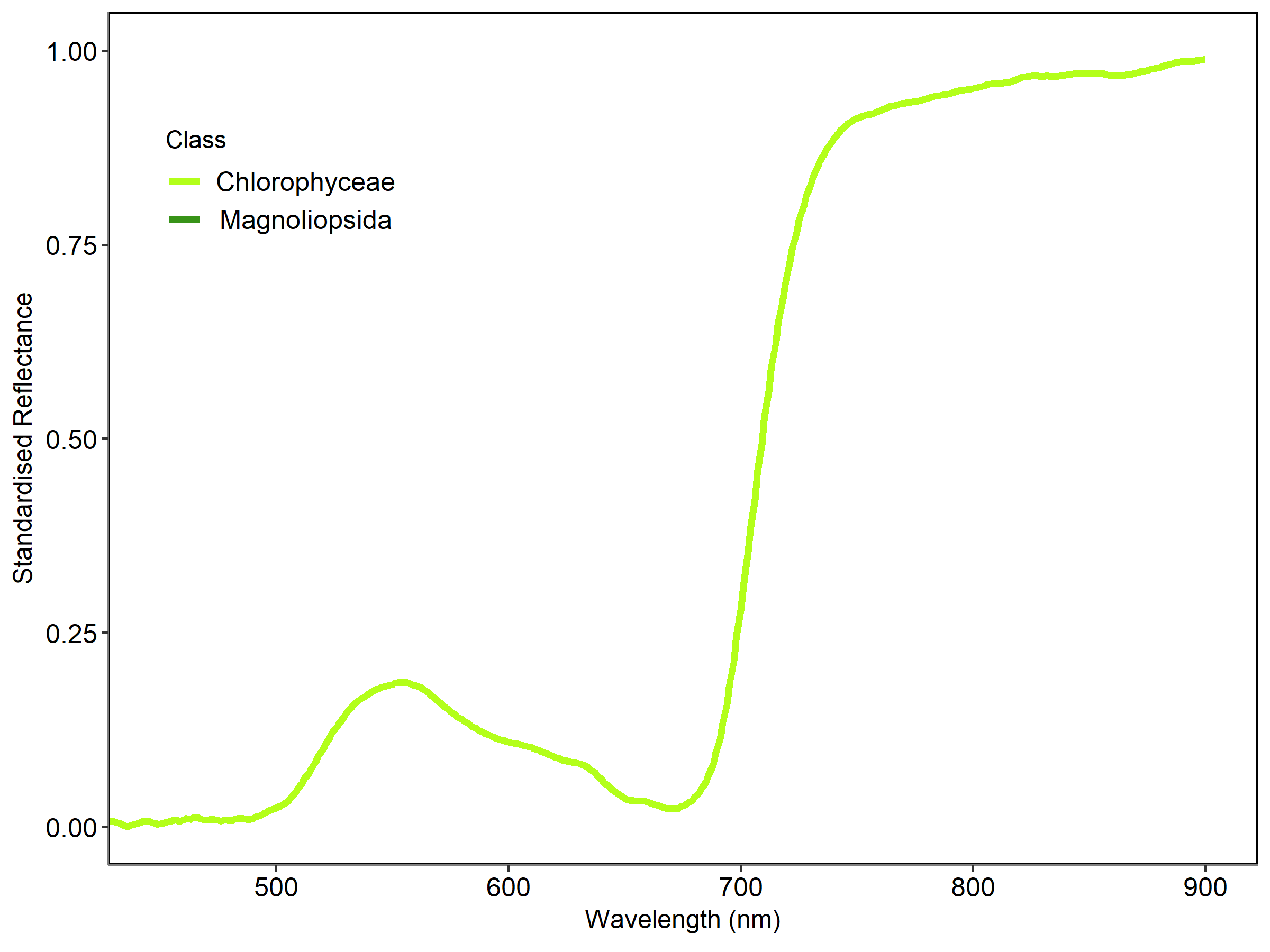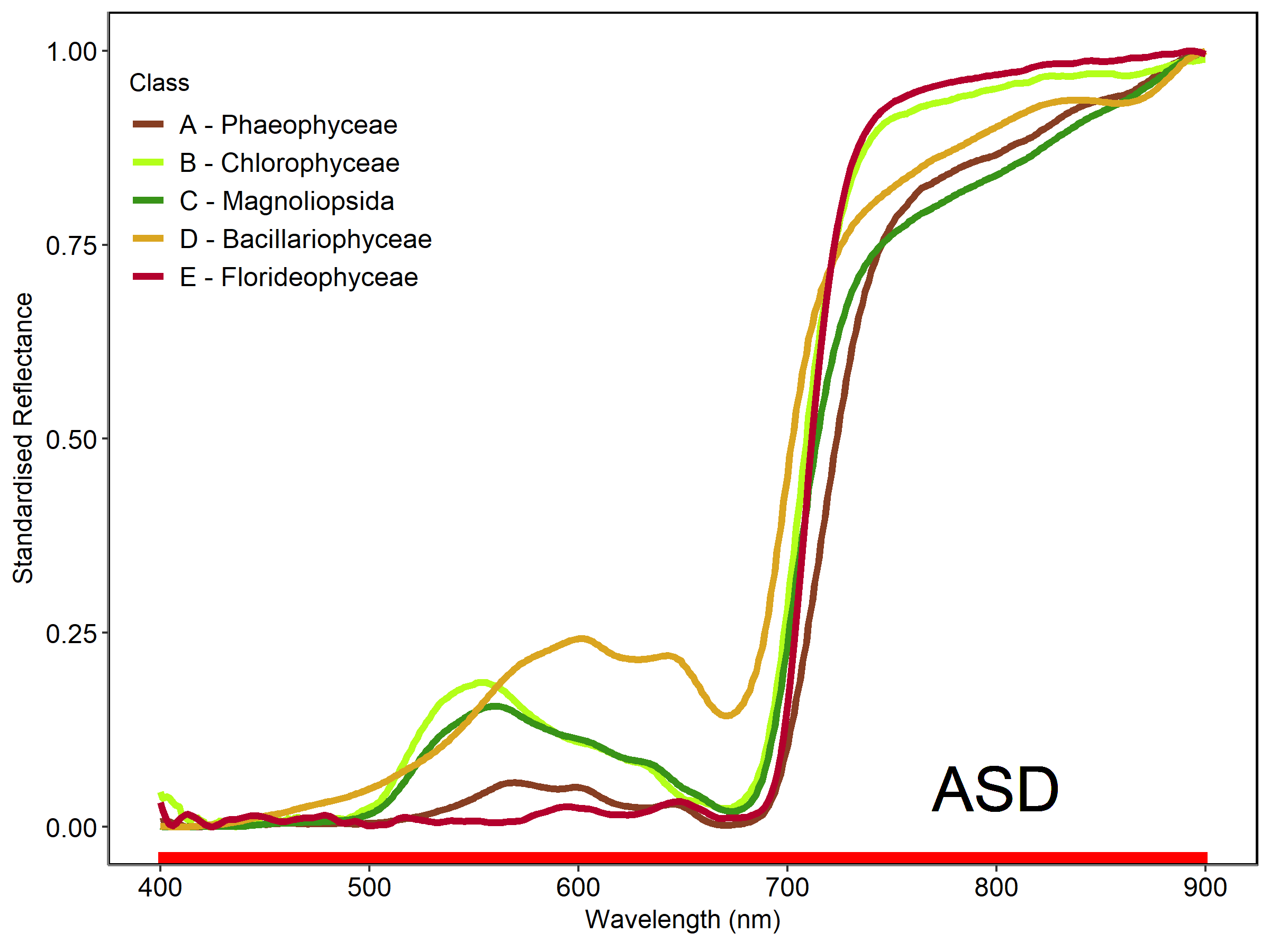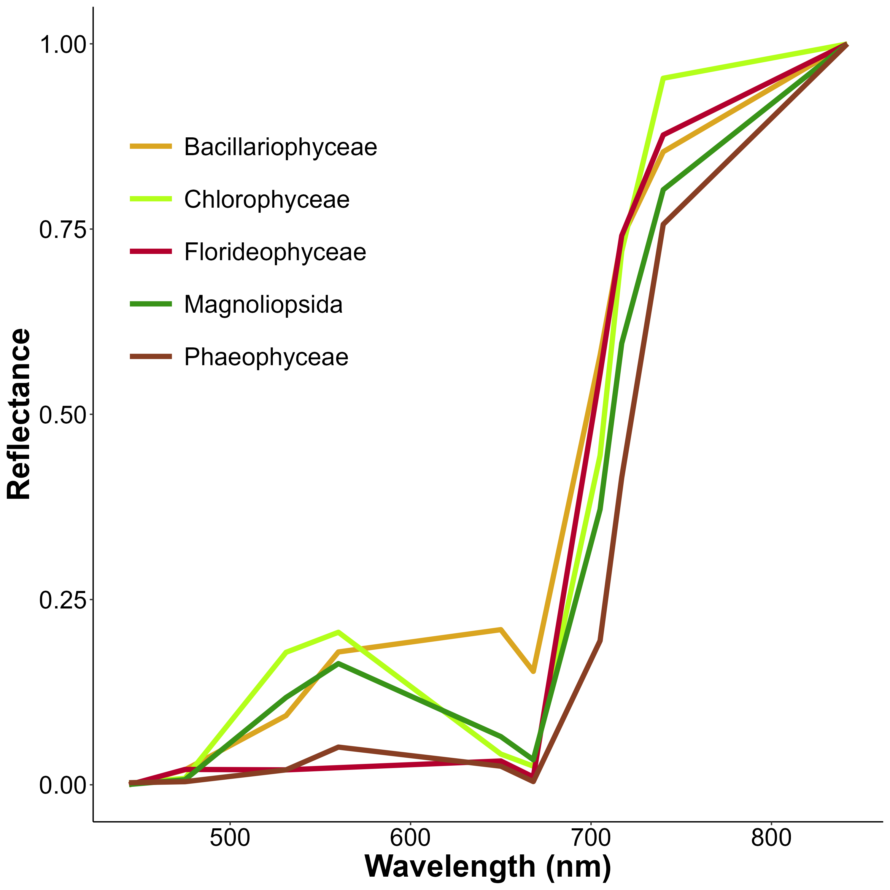 Building an algorithm that discriminates the most common taxonomic classes of vegetation found on soft bottom intertidal sediment