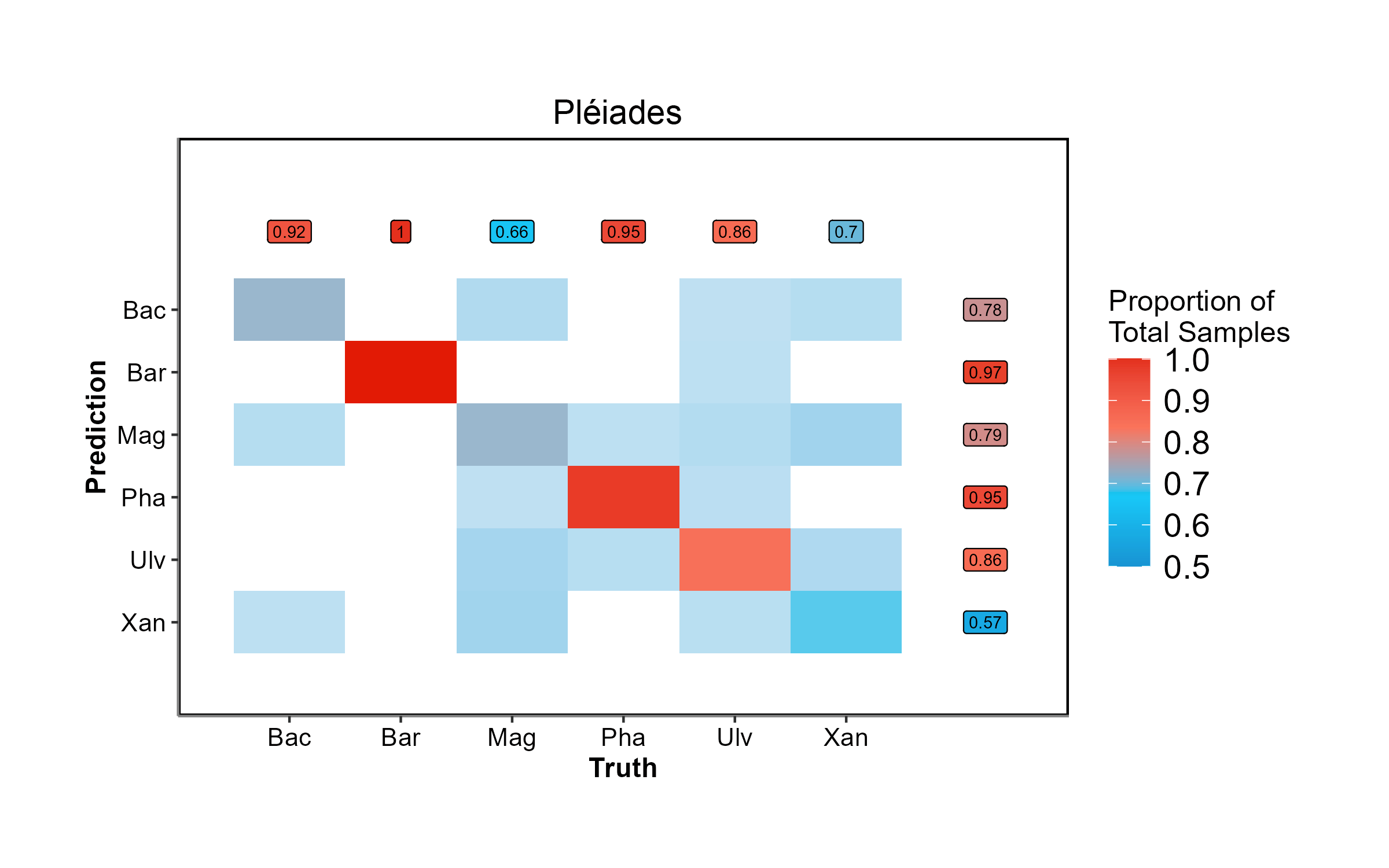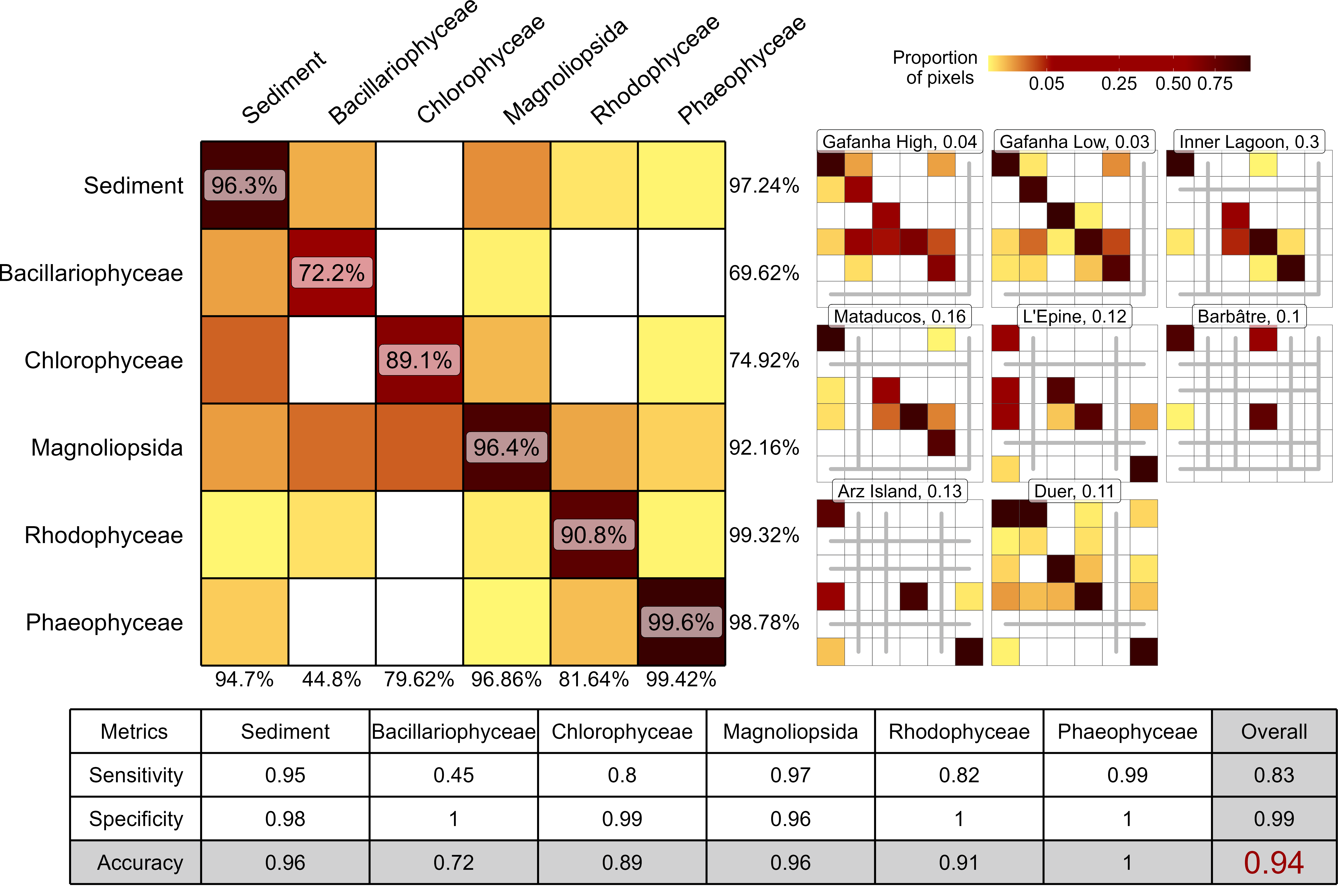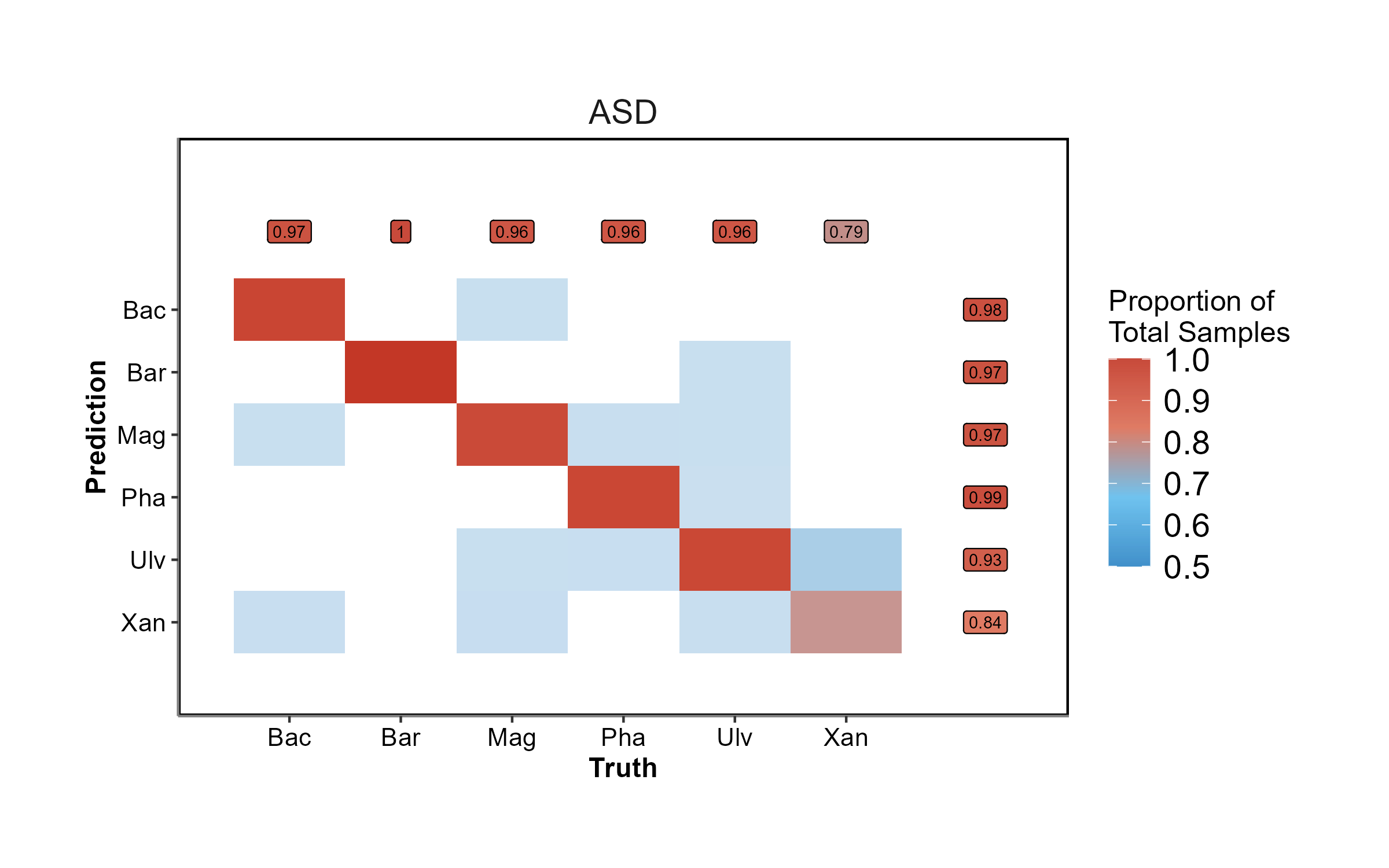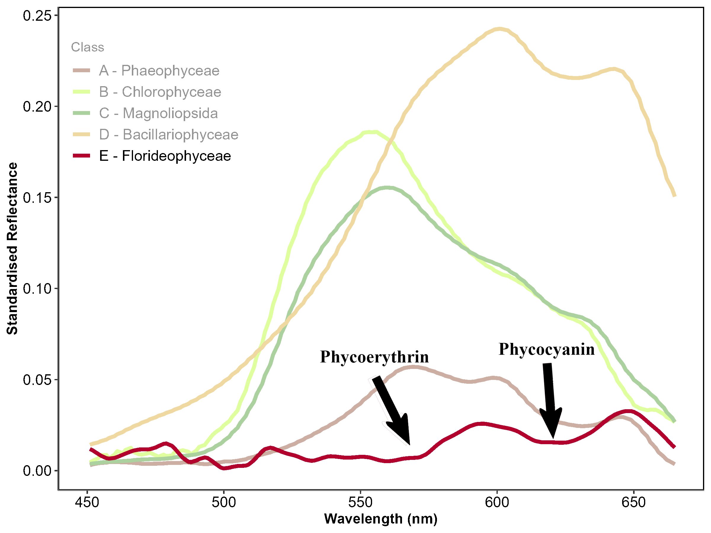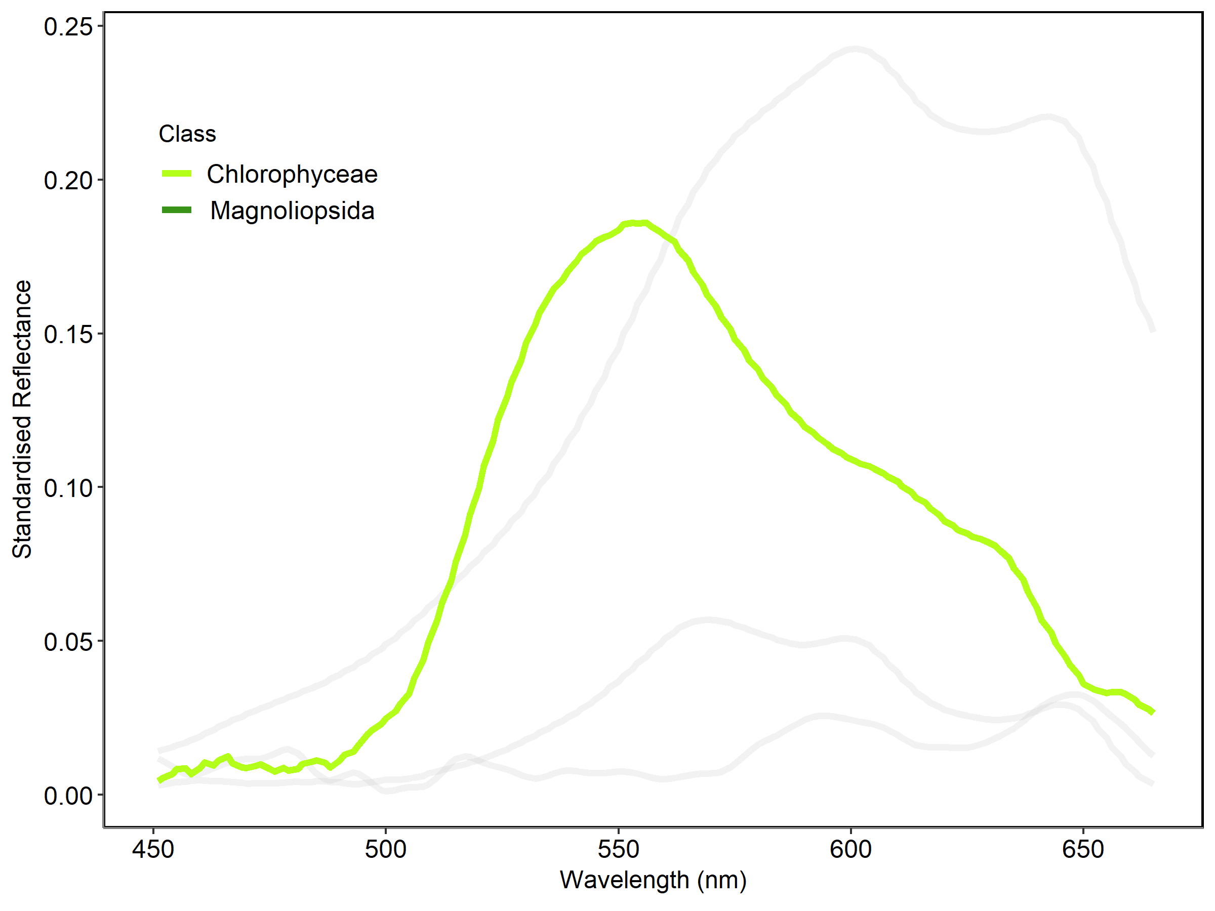 Building an algorithm that discriminates the most common taxonomic classes of vegetation found on soft bottom intertidal sediment