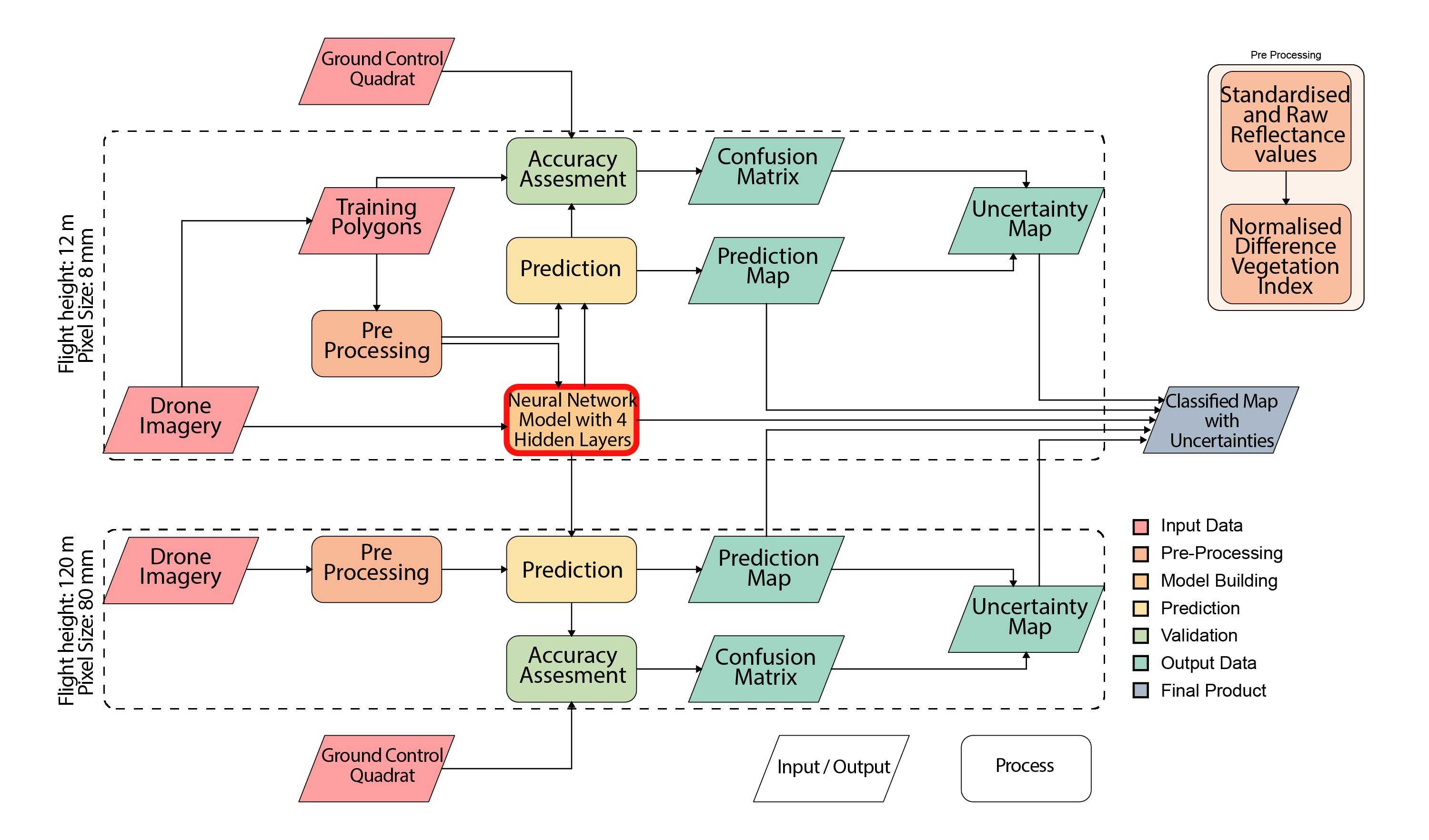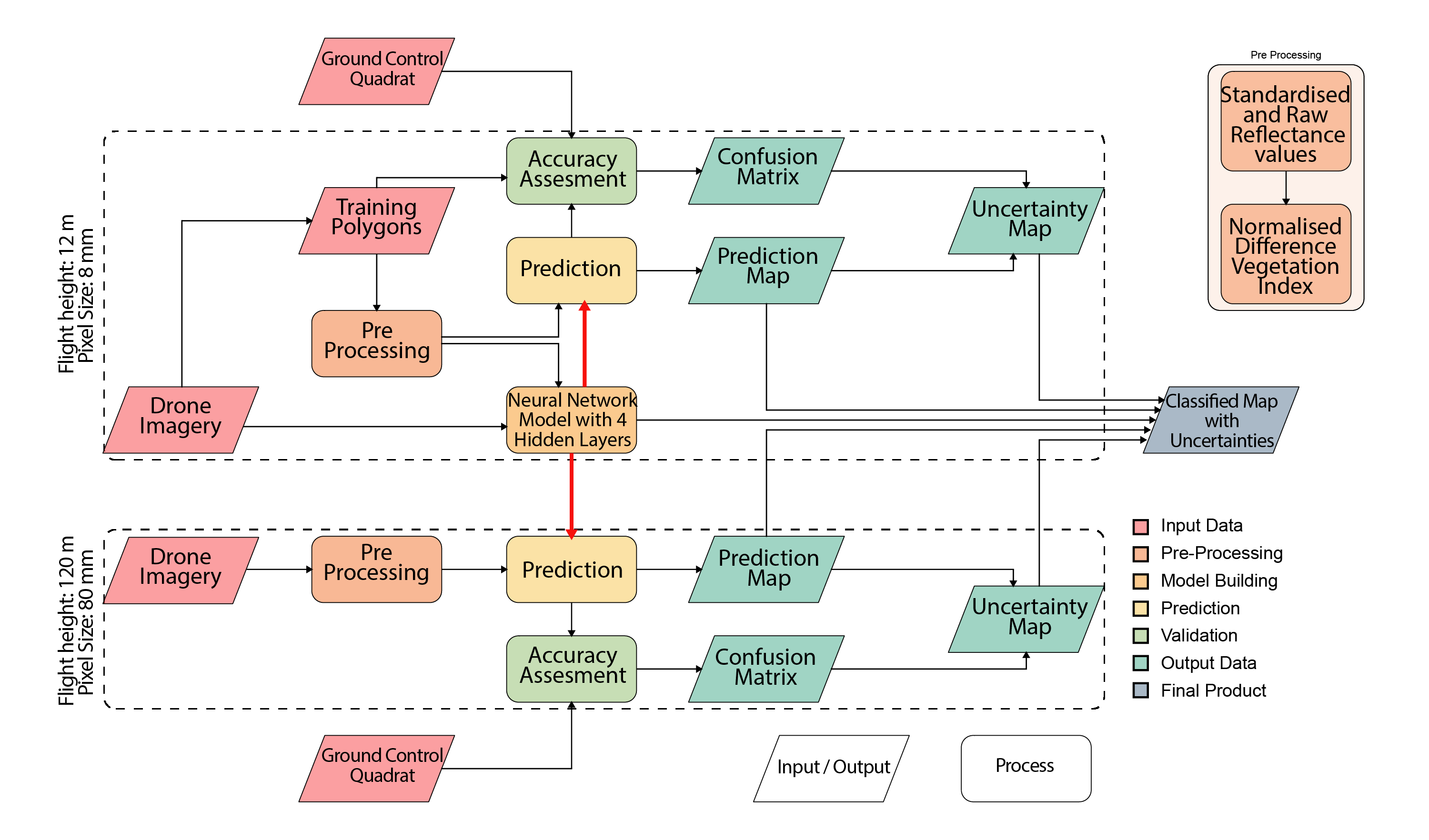 Methodology: DISCOV (drone-derived) classifications used to train and validate ICE CREAMS (Sentinel-2 satellite) model.