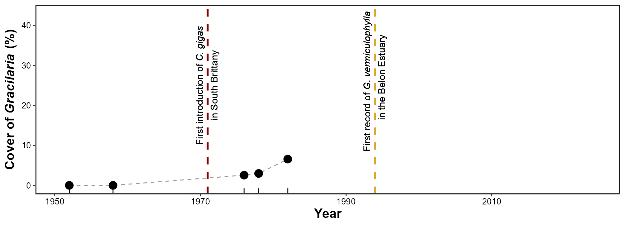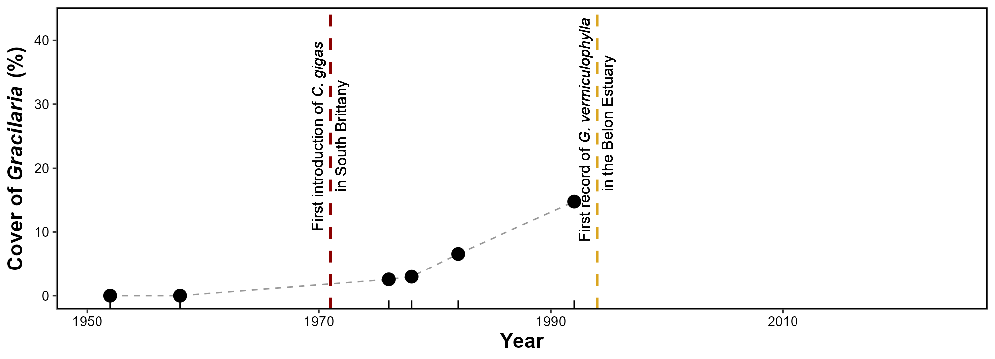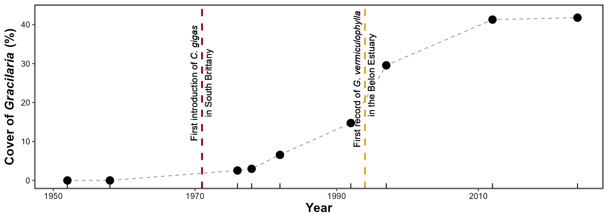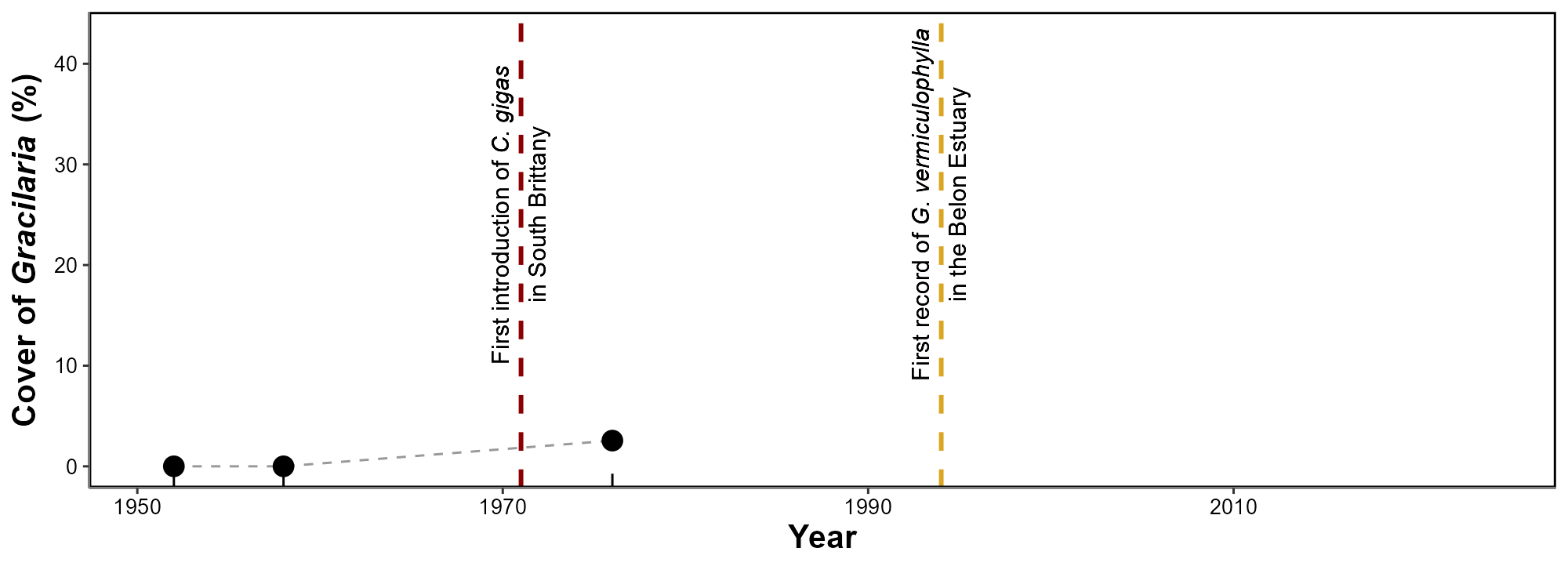 Photo interpretation of images to retrieve the area covered by G. vermiculophylla