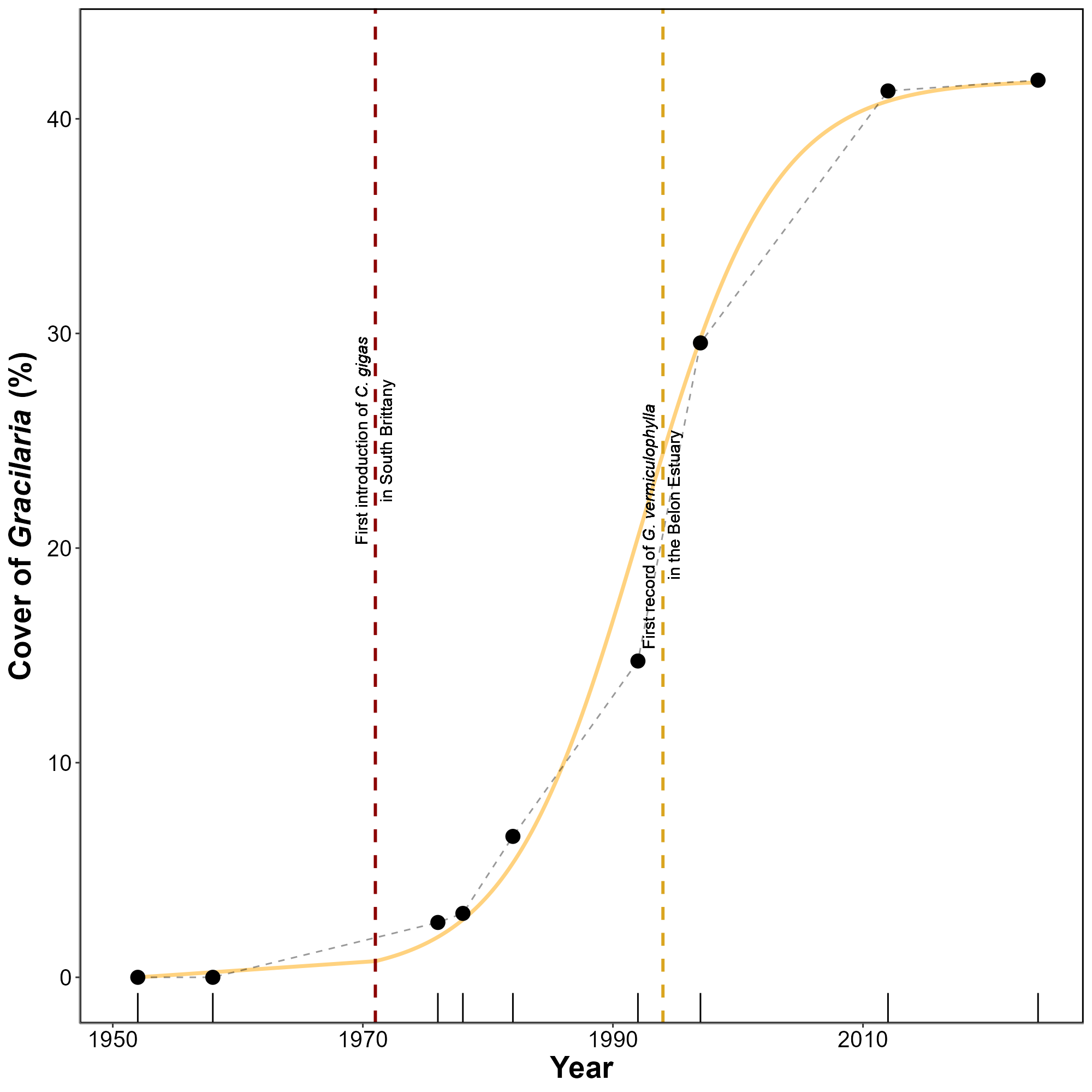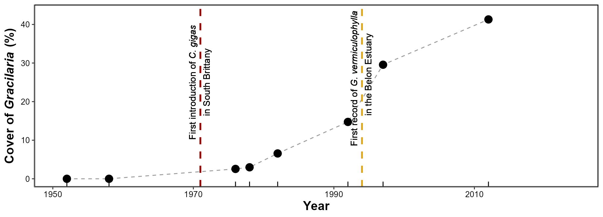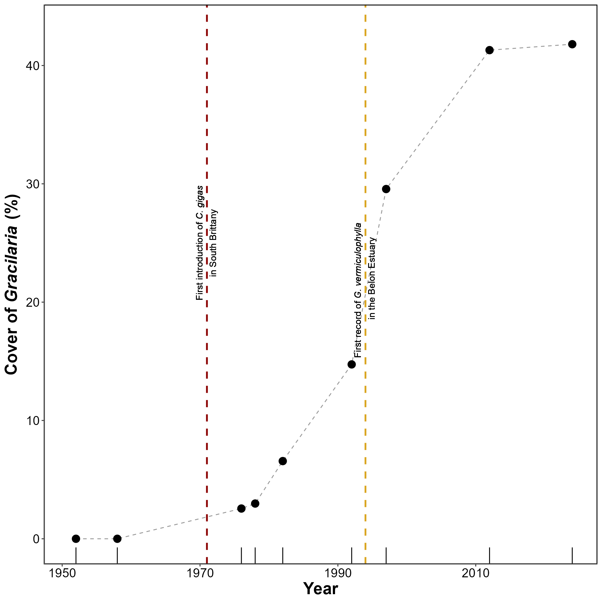 Photo interpretation of images to retrieve the area covered by G. vermiculophylla
