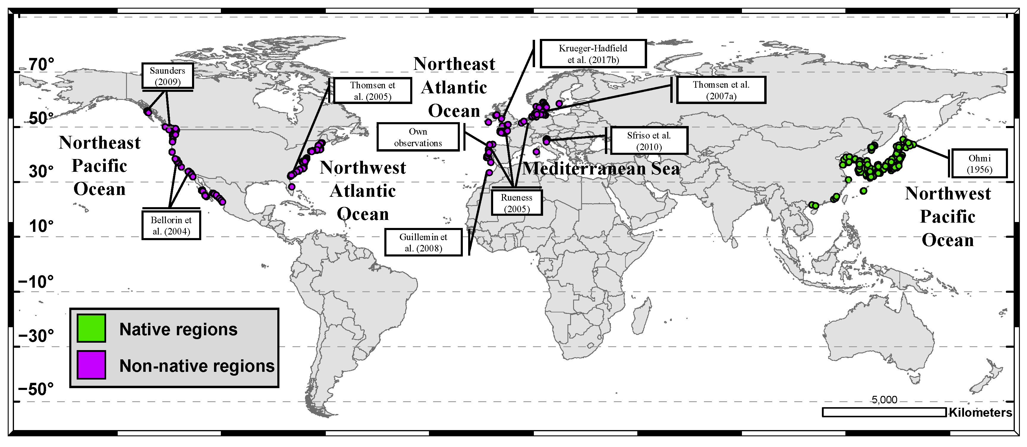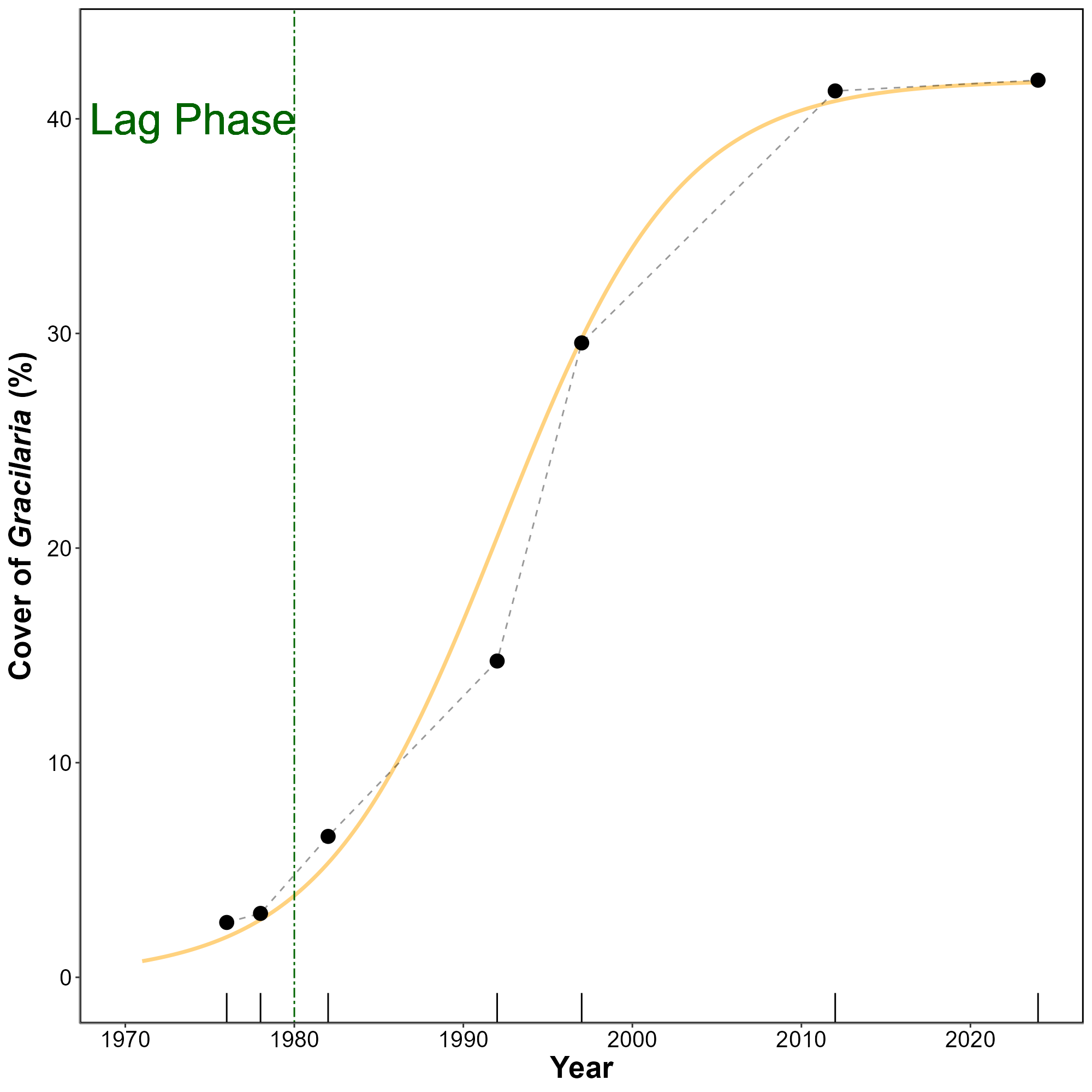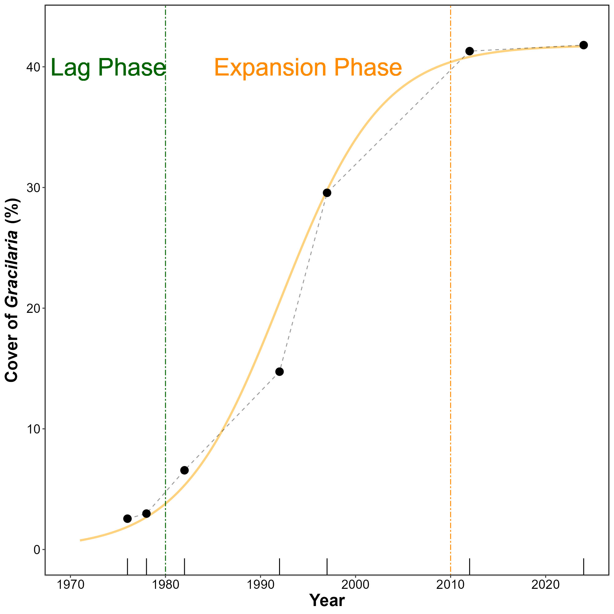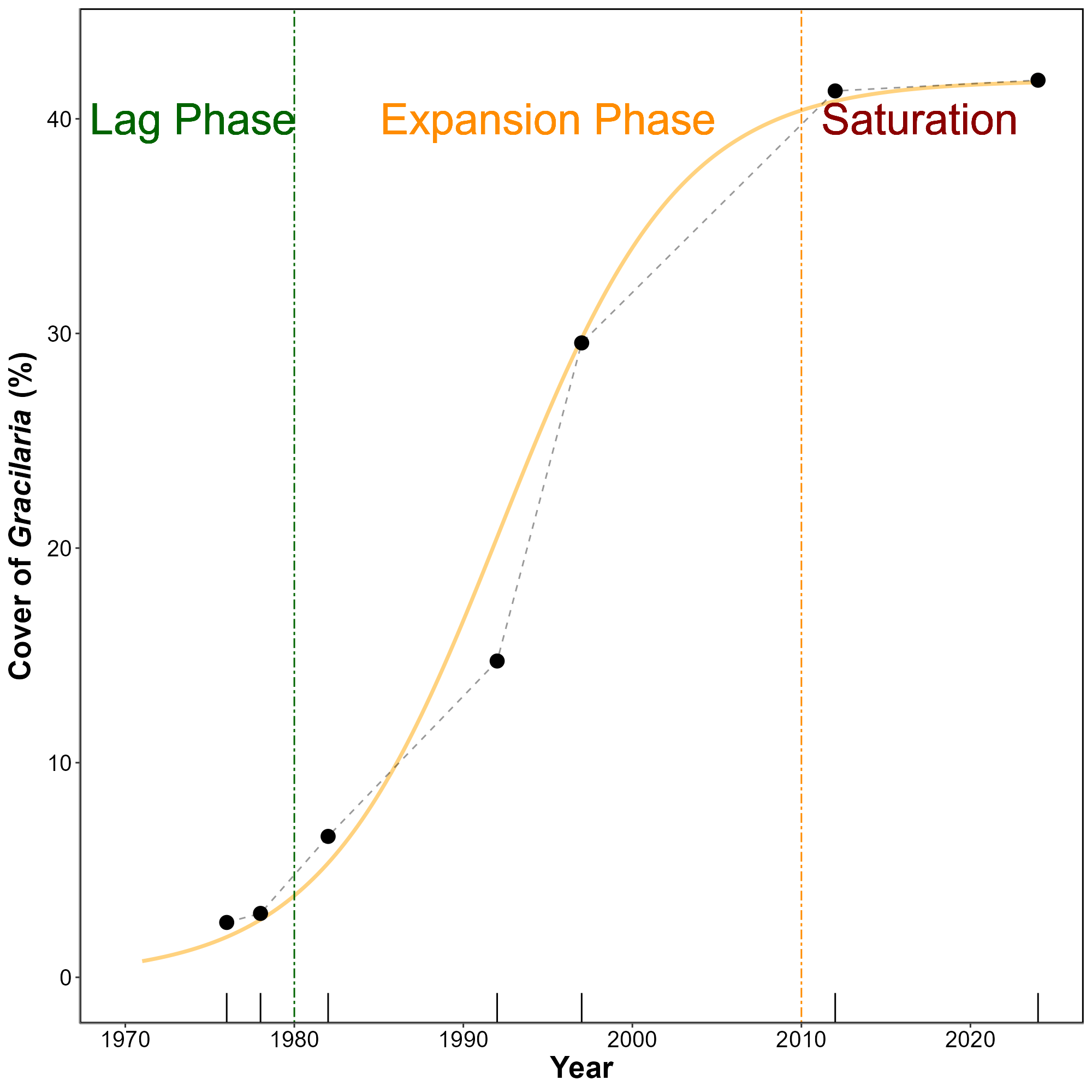 Photo interpretation of images to retrieve the area covered by G. vermiculophylla