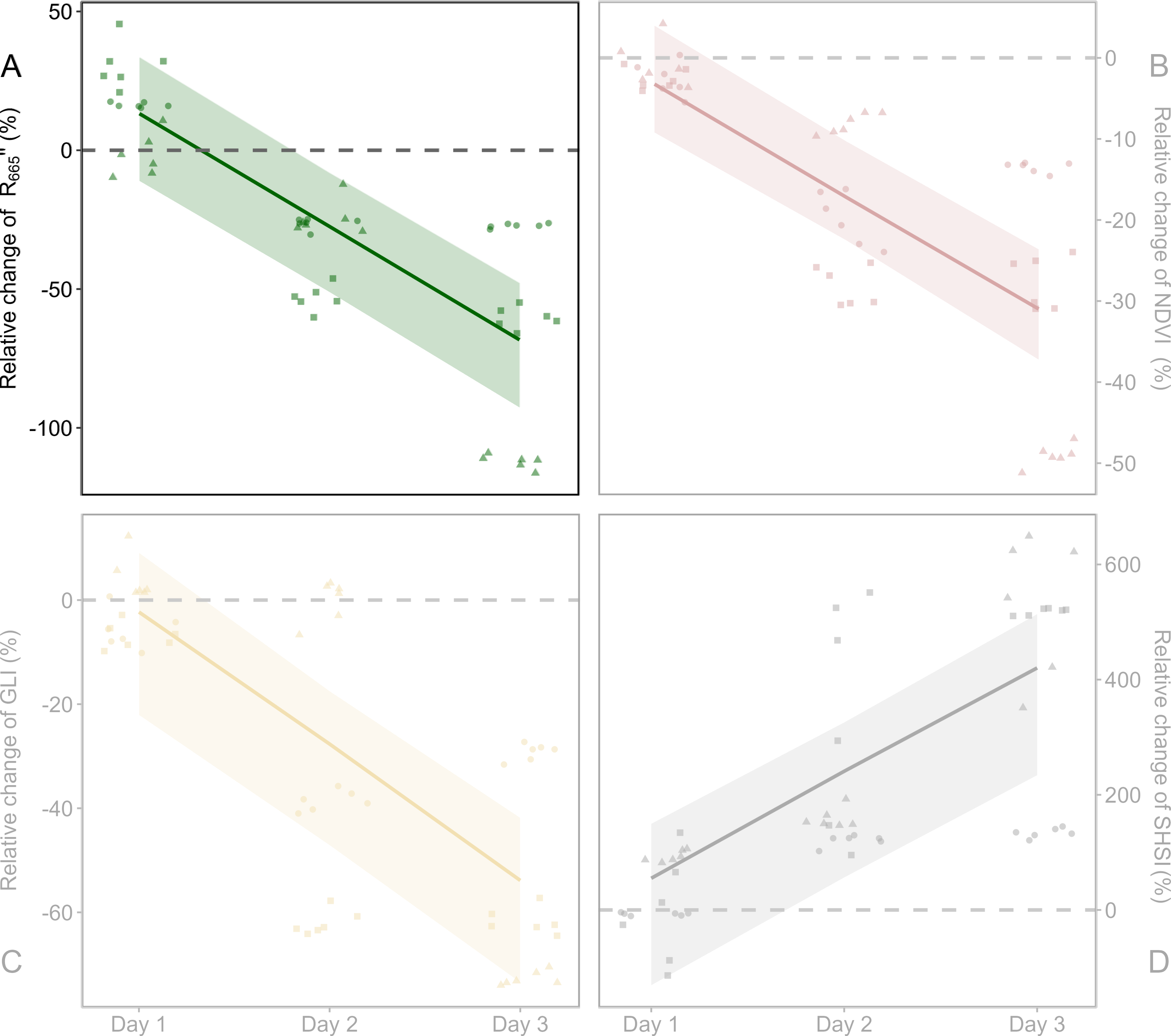 \(R''_{665 \, \text{nm}}\) drops by 68 %